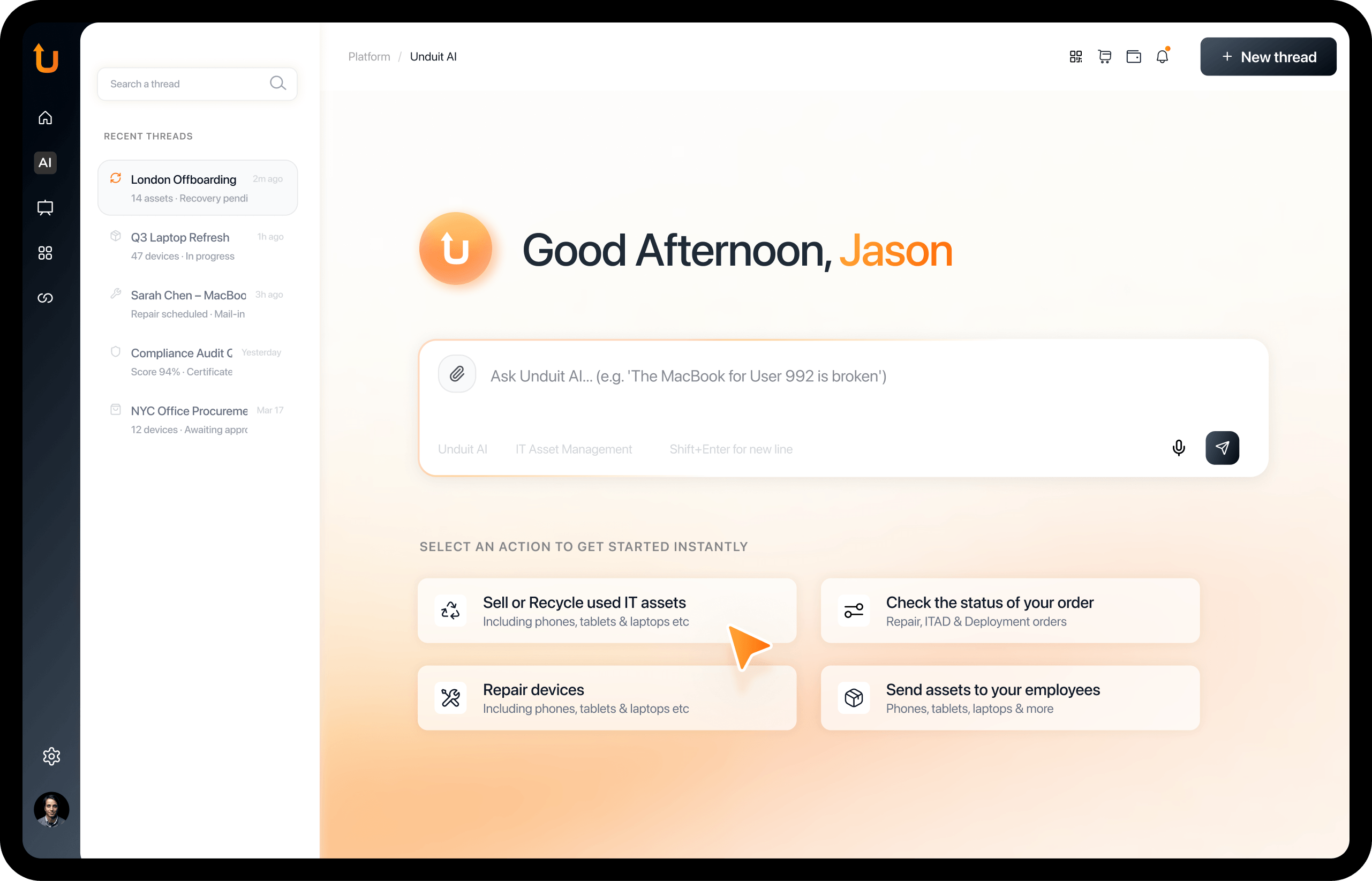 Unduit’s platform is built on a powerful ecosystem of lifecycle management apps trusted by global IT teams. These apps continue to run every part of the IT asset lifecycle, from procurement to recovery.